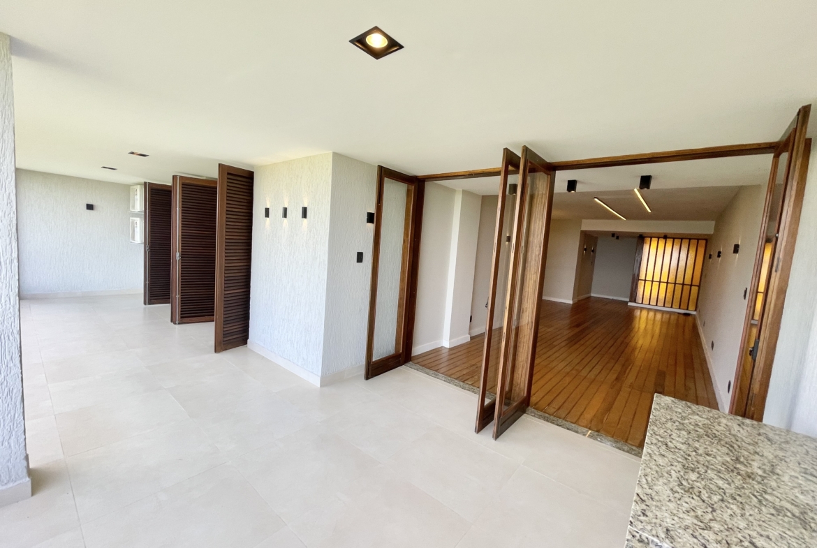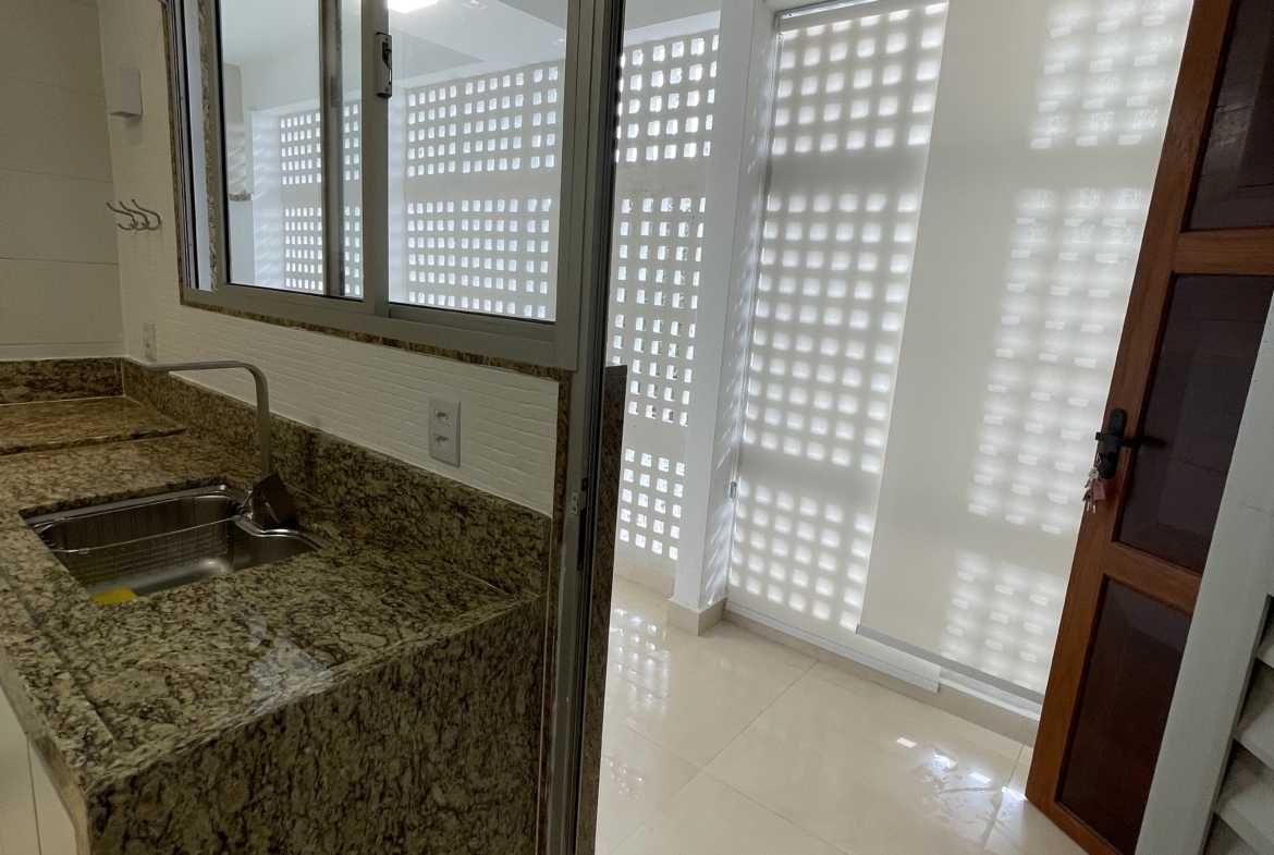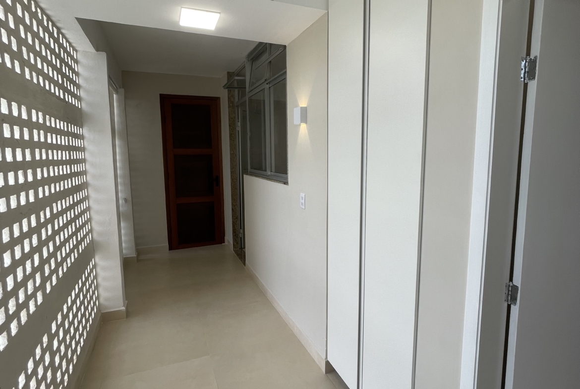 Magnífico apartamento residencial, com 180m2 de área privativa, à venda com exclusividade, com vista infinita para Praia de Coqueiral/Aracruz-ES, eleita a mais bela do Espírito Santo, em condomínio fechado, situado na região nobre do Bairro Coqueiral, anexo ao Clube da Orla, composto por 3 quartos, sendo 02 suítes, uma principal com banheiro sofisticado com lavatório duplo com torneiras estilo “cascata”, box alto de giro em formato L com nicho vertical e armários, e uma na parte de fora com banheiro exclusivo com cuba sobreposta, box alto de giro e nicho horizontal, living de até 4 ambientes com iluminação moderna por LED duplo linear, lustre, focos de sobrepor e arandelas, circulação com armários planejados e iluminação por lâmpada focal e arandela invisível, banheiro social com box alto de giro, nicho horizontal e armários, cozinha com bancada e pés de granito nas laterais, armários inferiores com fechamento por amortecimento e iluminação diferenciada por focos, arandelas e LED quadrado central, despensa com prateleiras, área de serviços com entrada exclusiva, 02(duas) persianas rolô para maior privacidade e armário com fechamento por amortecimento, extensa varanda com vista panorâmica para o mar, com guarda corpo de vidro infinito, iluminação esplêndida por arandelas/focos e bancada gourmet, 01(uma) vaga de garagem coberta e 01(uma) vaga sem cobertura.